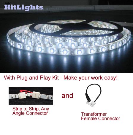 HitLights LED Flexible Lighting Strip Cool White or Bright White, 5 Meter or 16 Ft, 3528 Type, 300 SMD, 24 Watt Overview